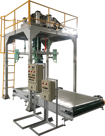 包裝袋自動下落后可以由自由輥道、動力輥道或皮帶輸送料輸送至下一工序;